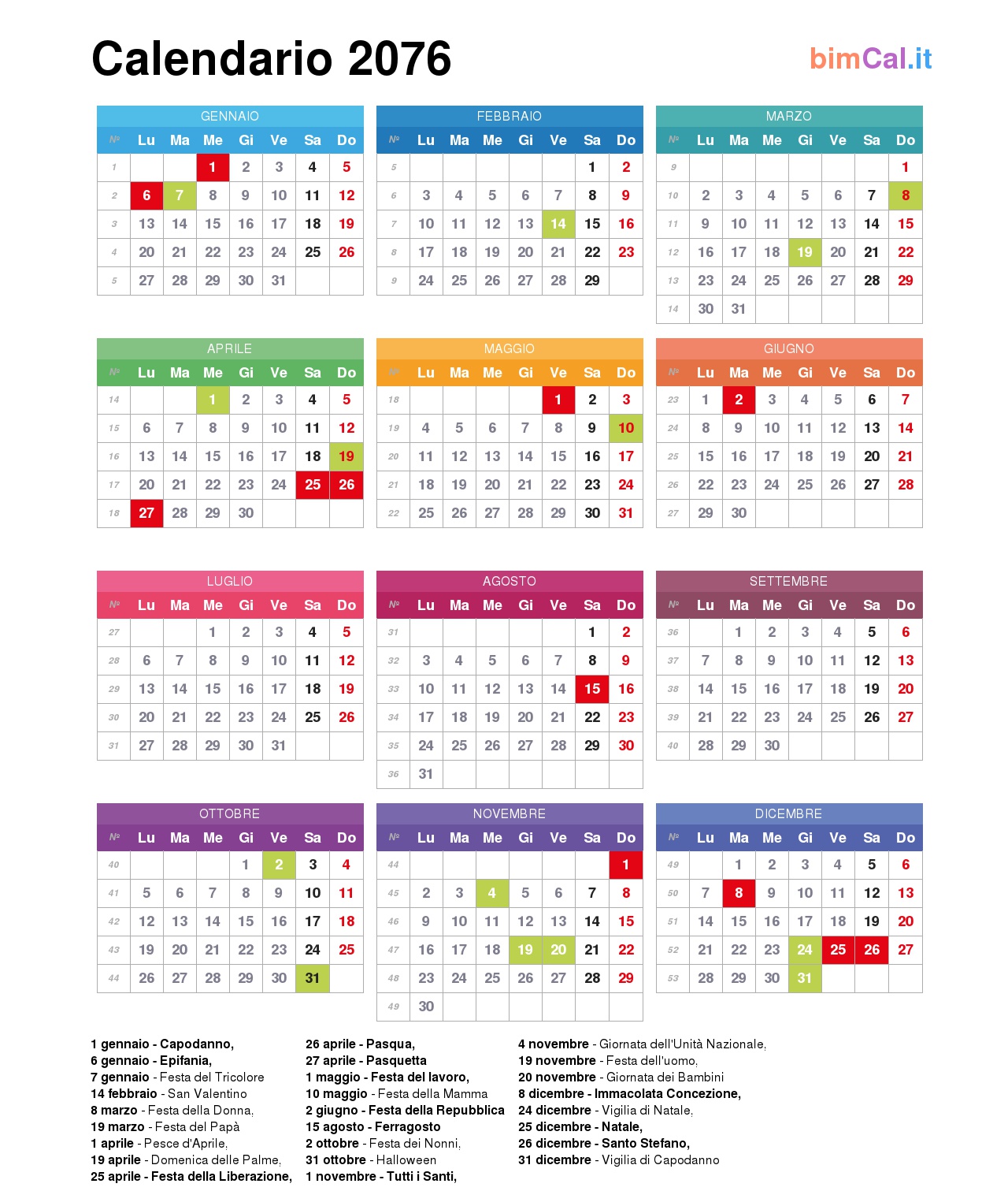 Scarica i calendari 2076 stampabili (PDF e JPG)